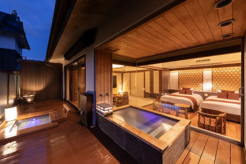また、宿泊なら最上階特別フロア「六花」にある計6室の特別室が◎。高級感のある露天風呂が備わっていて、恋人との特別なお泊りデートが楽しめます。