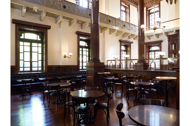 併設の「Café 1894(カフェ イチハチキューヨン)」は、明治期に銀行営業室として利用されていた空間を復元したミュージアムカフェ・バー。高さ約8mの二層吹き抜けが開放的な店内は、クラシカルかつ優雅な雰囲気が漂います。
