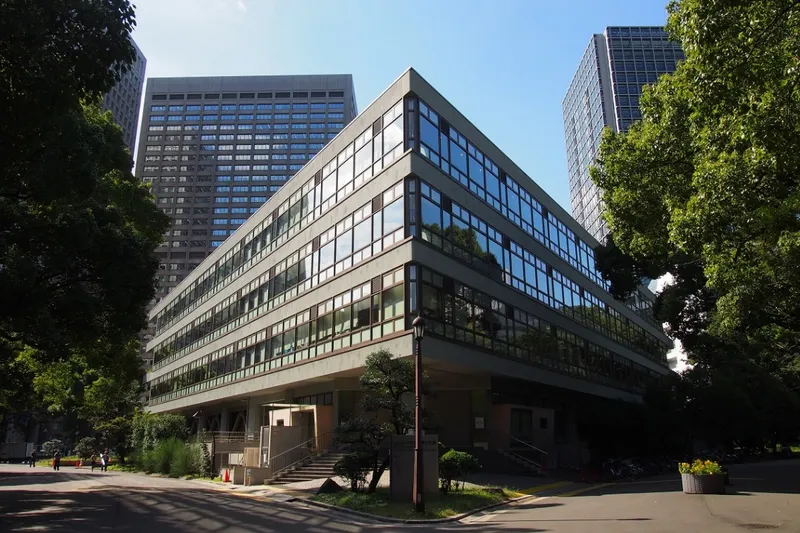 東京メトロ・霞ヶ関駅から徒歩約3分。日比谷公園内にある「千代田区立日比谷図書文化館」は、三角形の建築デザインが目を引く、ユニークな形状の複合文化施設です。