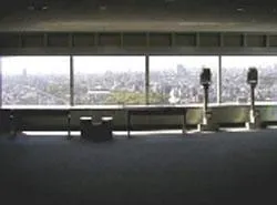 17階でエレベーターを降りて一番最初に登場するのが南ロビー。大きな窓に腰掛ベンチ、望遠鏡もしっかりと設置されています。