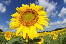 約2万4千平方メートルもの広大な農地に、すくすくとまっすぐに育った約10万本のひまわりが大きな花を咲かせ、毎年たくさんの観光客の目を楽しませています。 ※私有地につき、「清瀬市ひまわりフェスティバル」期間外は、立ち入ることができません。